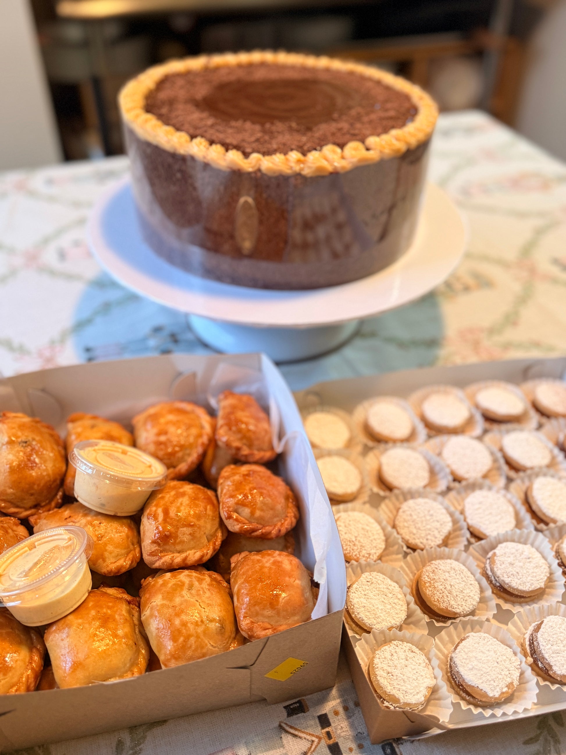 Disfruta de nuestro pack más pedido, ahora disponible para envío nacional. Incluye un pastel en lata 8 porciones (húmedo, sabroso y listo para disfrutar), 25 empanadas de carne o pollo y 25 mini alfajores rellenos con manjar suave. Todo preparado con ingredientes frescos y el sabor casero que distingue a Fiamma – sweets and pastries.